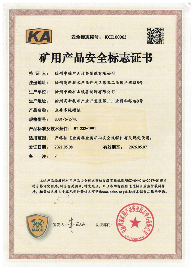 JDS9立井單繩罐籠礦安證...