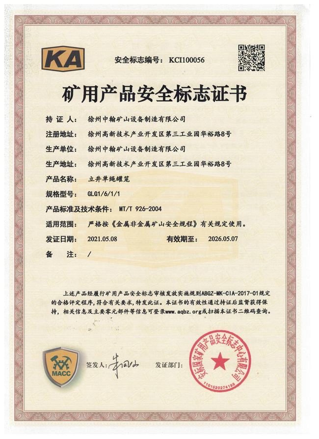 JX-8斜井箕斗礦安證書