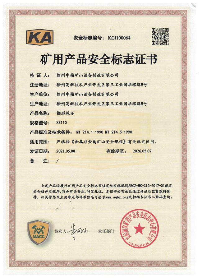 XS110楔形繩環礦安證書